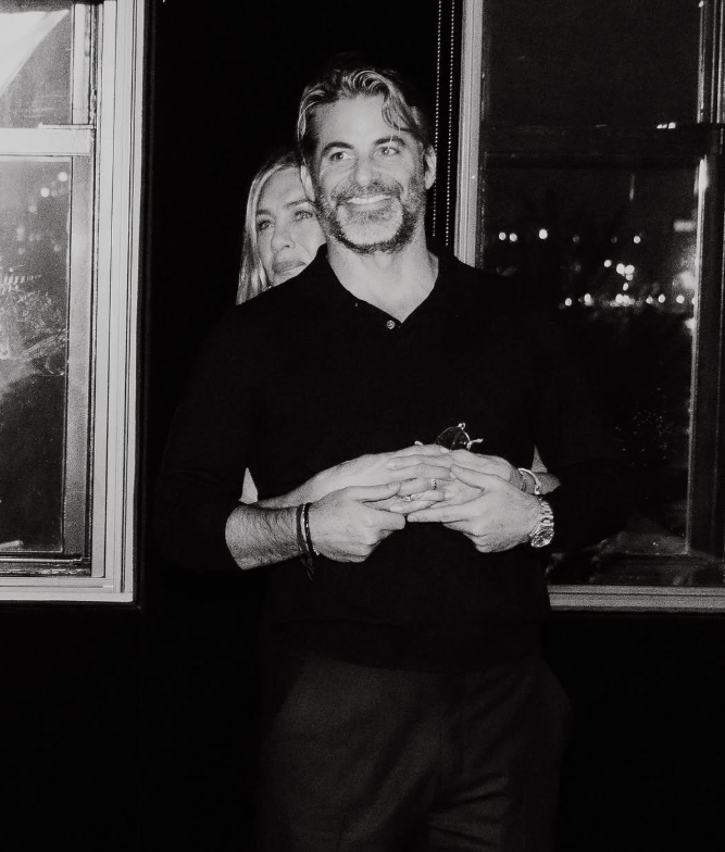 „Všetko najlepšie k narodeninám, moja láska,“ napísala Jennifer Aniston k čiernobielej fotografii s Jimom Curtisom, ktorého zozadu objíma. Pridala aj emotikon srdiečka.